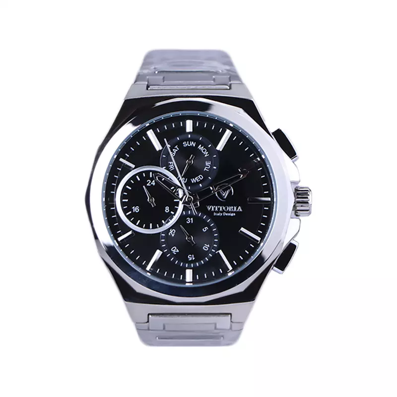 ویژگی ساعت مچی ویتوریا مردانه فلزی نقره ای صفحه مشکی VT 3404/1