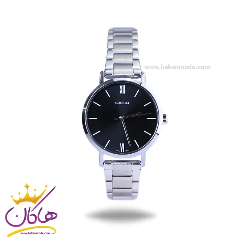 قفل ساعت مچی casio زنانه فلزی نقره ای صفحه مشکی LTP-VT02D-1AUDF