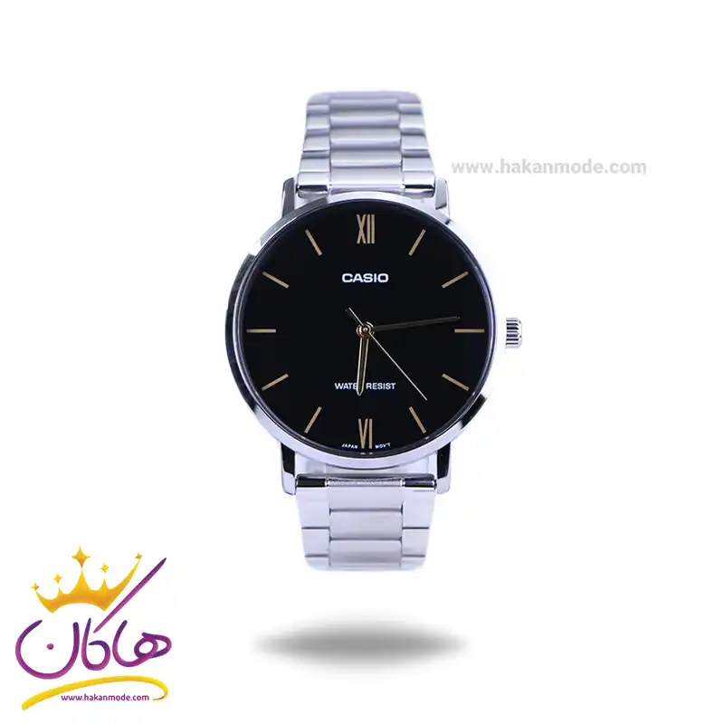 ساعت مچی کاسیو مردانه فلزی نقره ای صفحه مشکی MTP-VT01D-1BUDF