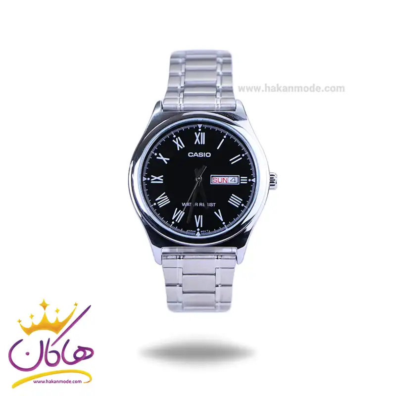 خرید ساعت مچی کاسیو مردانه فلزی نقره ای صفحه مشکی MTP-V006D-1BUDF