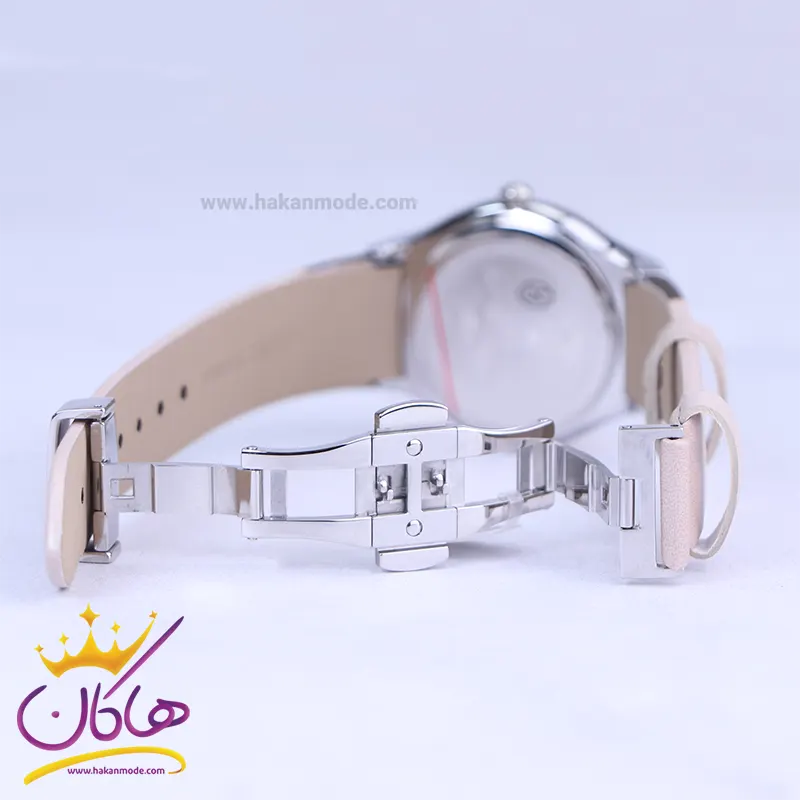 قفل ساعت مچی عقربه ای زنانه کرست بند چرم کرم صفحه شاین 6264/3