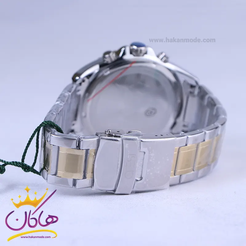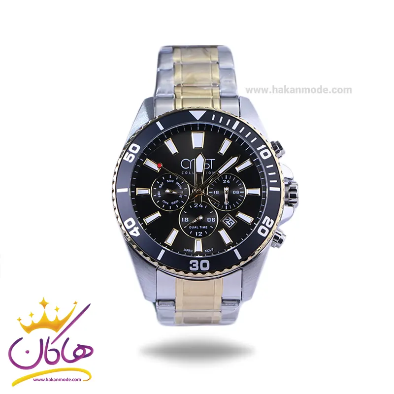 ویژگی ساعت مچی کرست مردانه فلزی نقره ای طلایی صفحه مشکی 6274/5