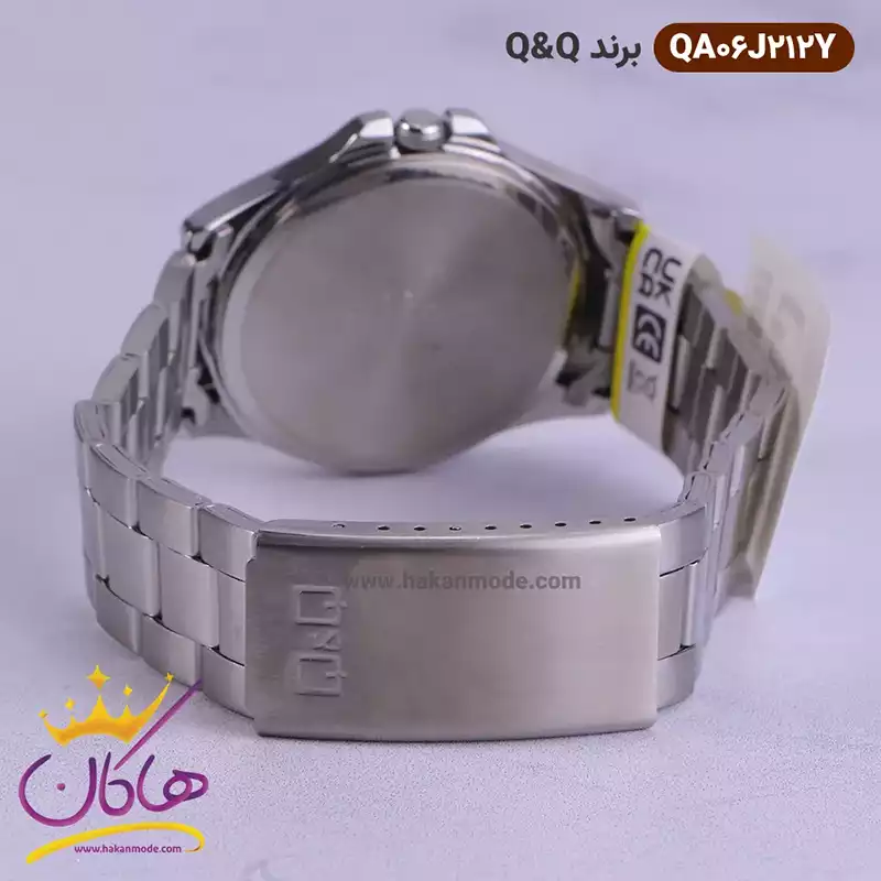 علاوه بر ویژگی های ظاهری باید گفت این ساعت تک موتوره است و چون موتور تمام انرژی خود را فقط صرف چرخاندن عقربه ها می کند، هم موتور و هم باتری طول عمر بیشتری دارند. اگر به داخل ساعت نگاه کنید صفحه مشکی یکدست با اندکسهای خطی مشکی نظر شما را جلب می کند. لوگوی برند Q&Q زیر عدد 12 و یک نوشته کوتاه بالای عدد 6 تنها تزیین این ساعت هستند. عقربه های ساده مشکی رنگ هم با اندکسها هماهنگ هستند. بند ساعت فلزی و از نوع استیل مرغوب است که باعث تعرق و خارش نمی شود. طرح این بند از یک بافت درشت تشکیل شده است. قفل این ساعت از مدل سه تکه است و ساعت به راحتی از دست نمیافتد. سادگی ساعت مچی کیو اند کیو نقره ای صفحه مشکیQA06J212Y یکی از دلایل شیکی آن است.