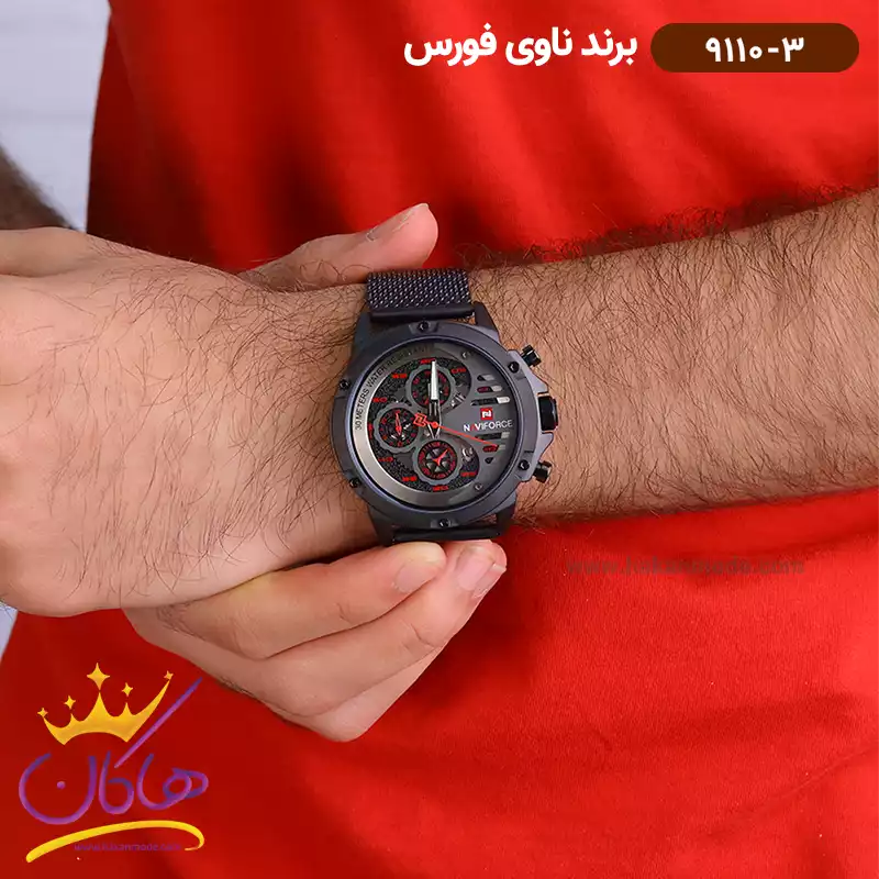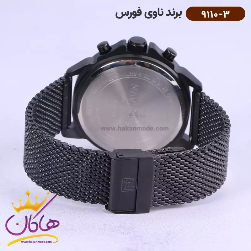 ویژگی ساعت نیوی فورس مردانه فلزی مشکی فول دیت کد 9110/3