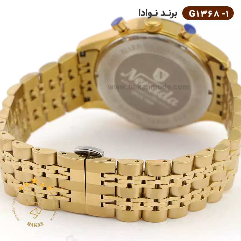 ساعت نوادا مردانه صفحه سفید فلزی تمام طلایی عقربه ای ایندکس خطی دارای نمایشگر تقویم.