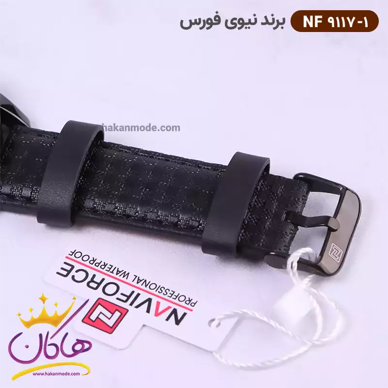 بند ساعت نیوی فورس مردانه بند چرمی کد 9117/1 تمام مشکی