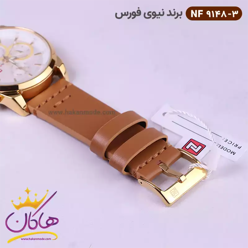 بهترین قیمت ساعت نیوی فورس مردانه بند چرم عسلی