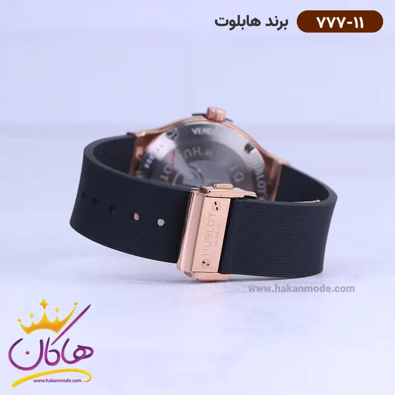 ساعت هابلوت زنانه بند رابر قاب رزگلد 777/11 نمای باز قفل
