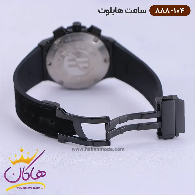 ساعت هابلوت زنانه بند رابر کرنوگراف تمام مشکی 888/104 نمای باز قفل