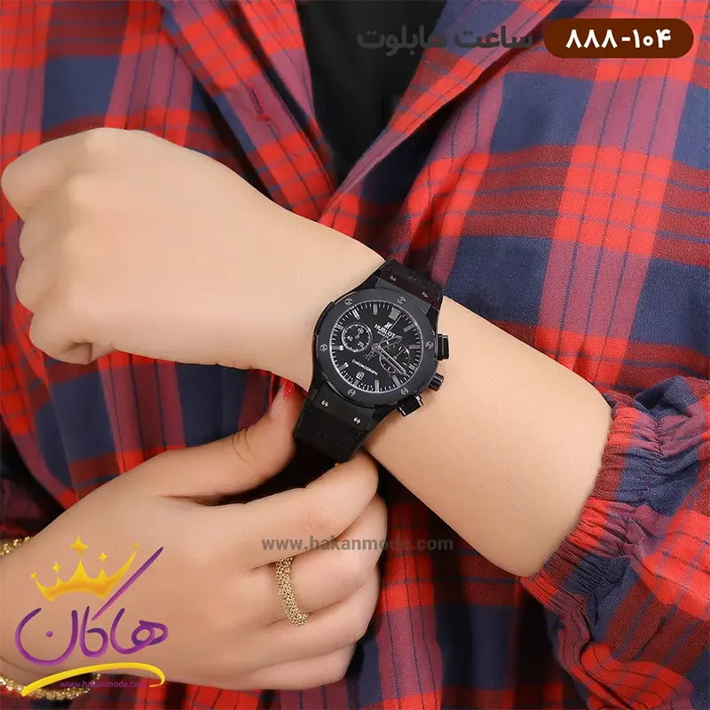 ساعت هابلوت زنانه بند رابر کرنوگراف تمام مشکی 888/104