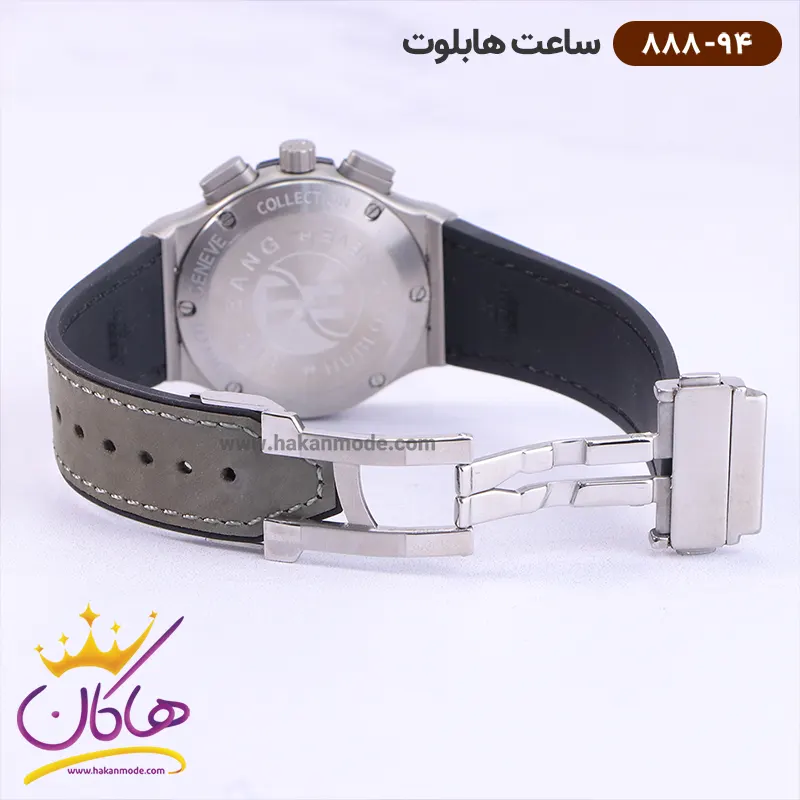 ساعت هابلوت زنانه بند رابر تمام نقره ای کرنوگراف 888/94 نمای باز قفل