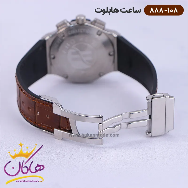 ساعت هابلوت زنانه بند چرم قهوه ای کرنوگراف 888/108 نمای باز قفل