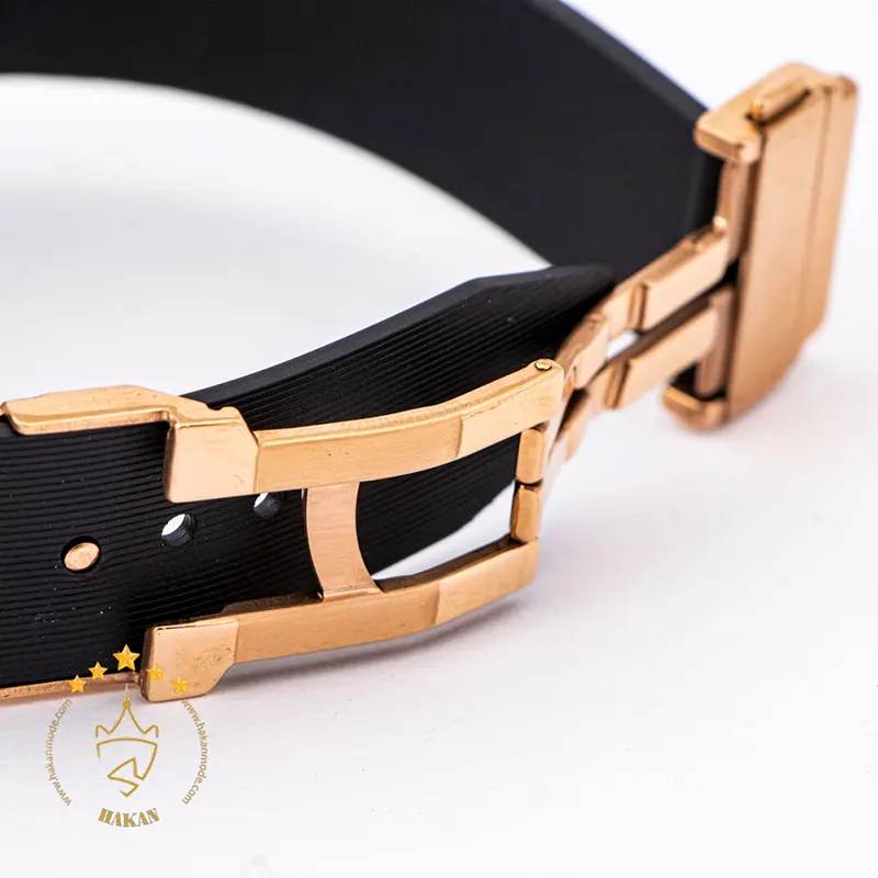ساعت هابلوت زنانه مشکی رزگلد صفحه اسکلتون سه موتوره از جمله مدل های سری هابلوت بیگ بنگ می باشد. این مدل ۳ موتوره می باشد و با موتور میوتای ژاپن و قاب و قفل استیل و بند رابر دارای کیفیت فوق العاده ای می باشد .این مدل دارای قاب و دور قاب رزگلد و قفل استیل با رنگ رزگلد و بند رابر در تنوع رنگ می باشد .صفحه این مدل طرح اسکلتون یا قلب باز می باشد . این مدل دارای نشانگر ۳۱ روز ماه می باشد