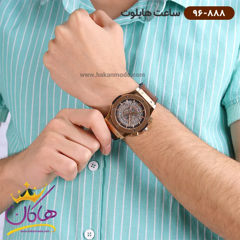 در خرید ساعت هابلوت مردانه بند چرمی، توجه داشته باشید که از نظر قیمت در حد متوسط و از نظر کیفیت از بهترین نمونه های ساعت “های کپی” است. موتور این ساعت ساخت ژاپن و از نوع کوارتز است. این مدل ساعت هابلوت، سه موتوره و از نوع کرنوگراف است. ساعت هابلوت مردانه بند چرم اسکلتون کرنوگراف 888/96 دارای استاندارد 3 ATM است یعنی تا حد شستشوی دستها ضدآب است. داشتن یکسال گارانتی موتور و پنج سال ضمانت تعویض باتری از دیگر دلایل محبوبیت این ساعت سه موتوره است. این ساعت بند چرم بهترین گزینه برای استایل اسپرت و امروزی است، پس با خیال راحت آن را به دست بیندازید و به مهمانی، خرید یا دانشگاه بروید.