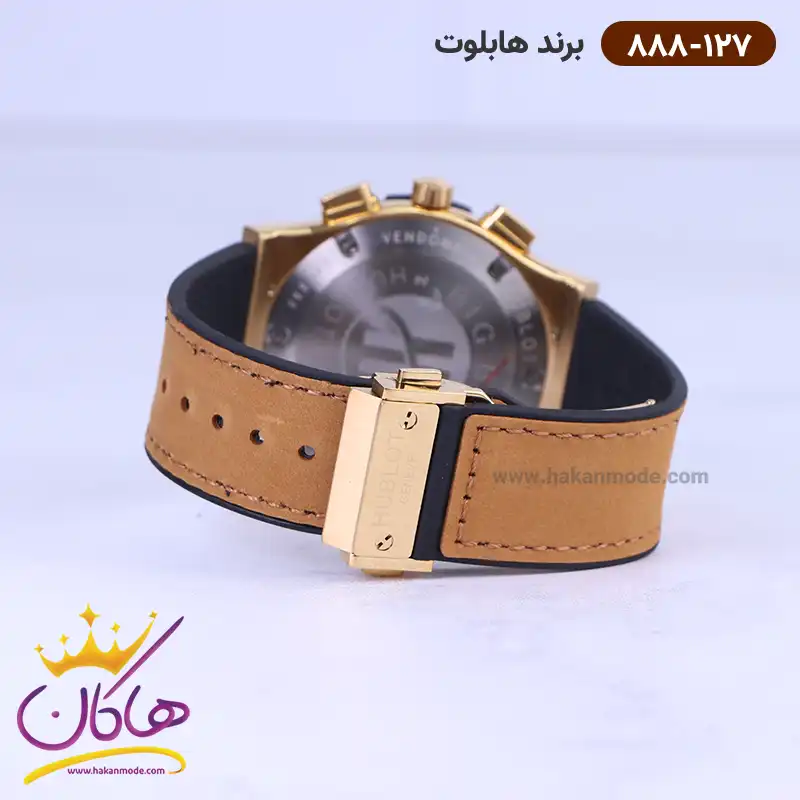 ساعت هابلوت مردانه بند جیر عسلی کرنوگراف 888/127 نمای باز قفل