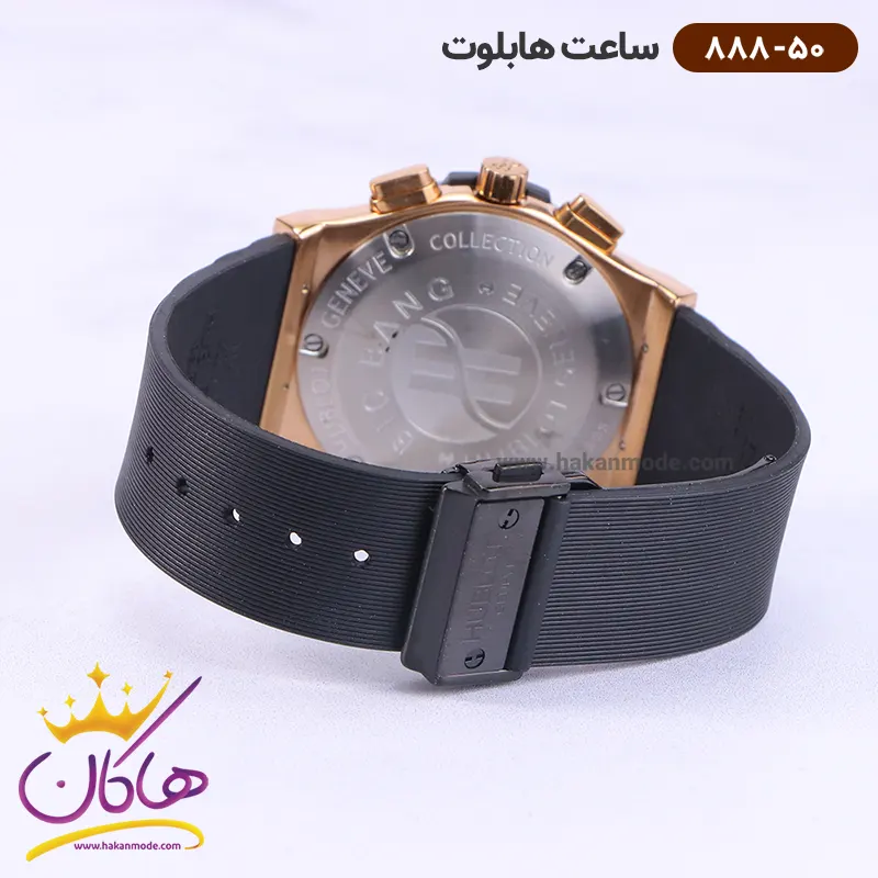 ساعت هابلوت مردانه بند رابر مشکی کرنوگراف اندکس رزگلد 888/50
