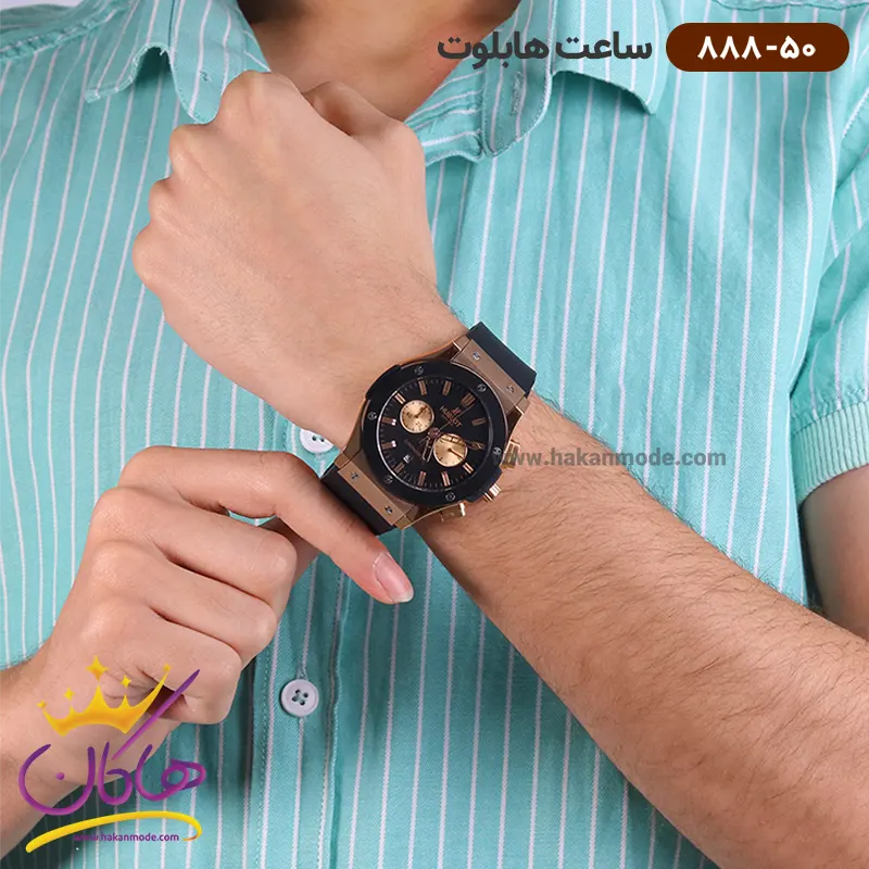 در خرید ساعت هابلوت مردانه بند رابر، توجه داشته باشید که از نظر قیمت در حد متوسط و از نظر کیفیت از بهترین نمونه های ساعت “های کپی” است. موتور این ساعت ساخت ژاپن و از نوع کوارتز است. این مدل ساعت هابلوت، سه موتوره و از نوع کرنوگراف است. ساعت هابلوت مردانه بند رابر مشکی کرنوگراف اندکس رزگلد 888/50 دارای استاندارد 3 ATM است یعنی تا حد شستشوی دست‌ها ضدآب است. داشتن یک‌سال گارانتی موتور و پنج سال ضمانت تعویض باتری از دیگر دلایل محبوبیت این ساعت سه موتوره است. این ساعت بند رابر بهترین گزینه برای استایل اسپرت و امروزی است، پس با خیال راحت آن را به دست بیندازید و به مهمانی، خرید یا دانشگاه بروید.
