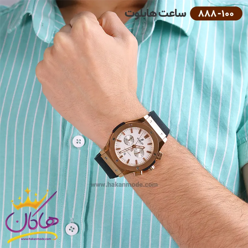 در خرید ساعت هابلوت مردانه بند رابر، توجه داشته باشید که از نظر قیمت در حد متوسط و از نظر کیفیت از بهترین نمونه های ساعت “های کپی” است. موتور این ساعت ساخت ژاپن و از نوع کوارتز است. این مدل ساعت هابلوت، سه موتوره و از نوع کرنوگراف است. ساعت هابلوت مردانه بند رابر کرنوگراف صفحه سفید قاب رزگلد 888/100 دارای استاندارد 3 ATM است یعنی تا حد شستشوی دستها ضدآب است. داشتن یکسال گارانتی موتور و پنج سال ضمانت تعویض باتری از دیگر دلایل محبوبیت این ساعت است. این ساعت بهترین گزینه برای استایل اسپرت و امروزی است، پس با خیال راحت آن را به دست بیندازید و به مهمانی، خرید یا دانشگاه بروید.
