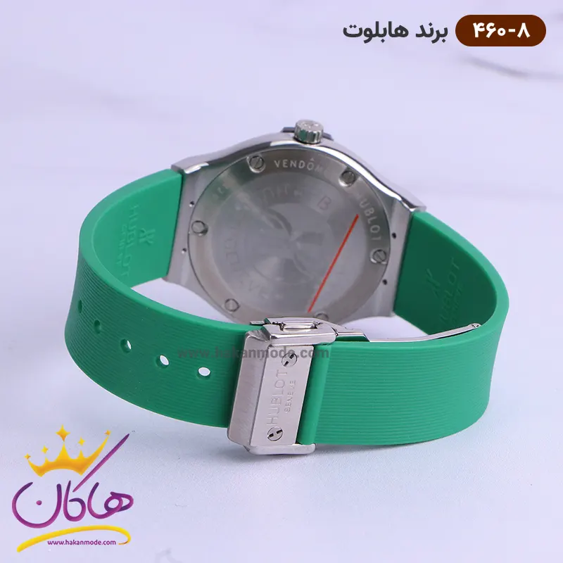 بهترین قیمت ساعت هابلوت زنانه کرنوگراف بند رابر قاب تمام نگین صفحه سبز