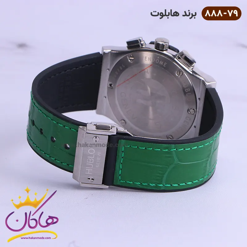 بهترین قیمت ساعت هابلوت کرنوگراف قاب نقره ای صفحه سبز