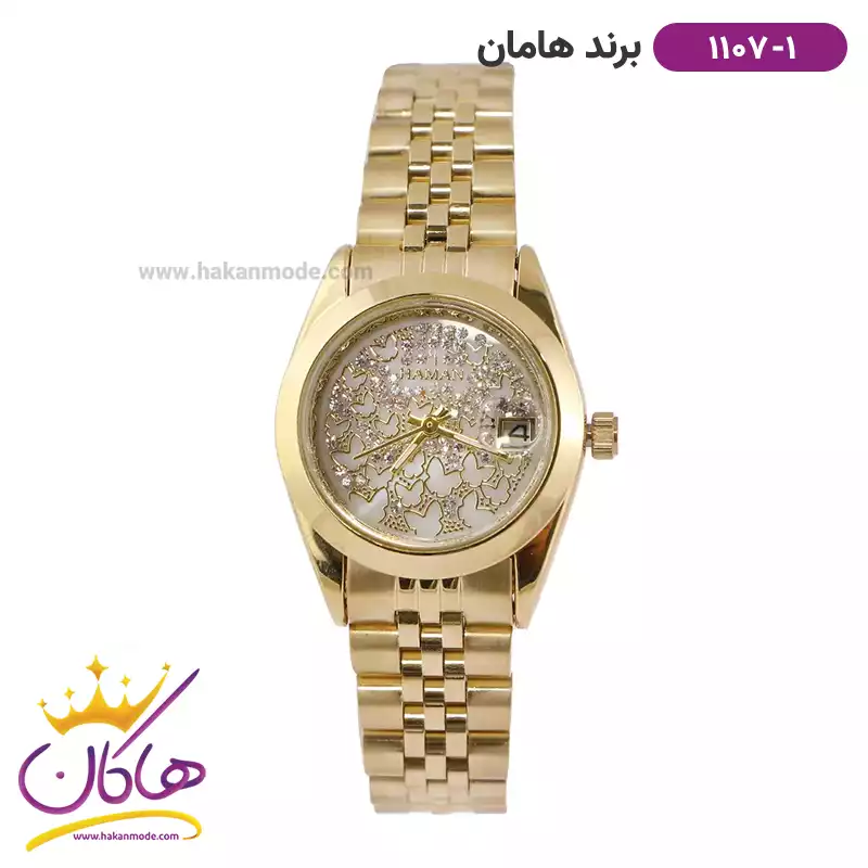ساعت زنانه هامان فلزی طلایی طرح پروانه 1107/1 L