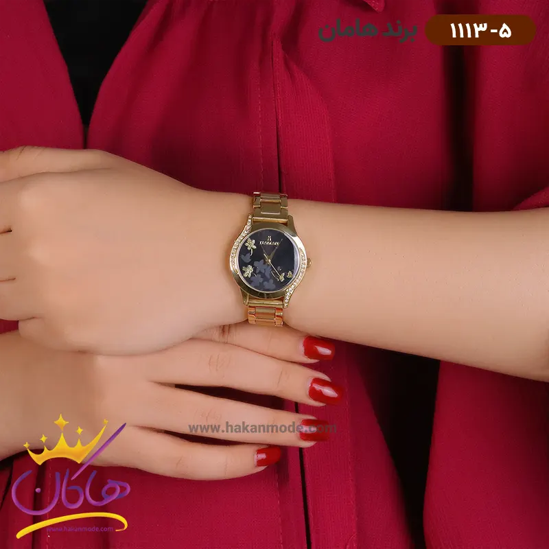 ساعت هامان زنانه طلایی صفحه گلدار کد 1113/5