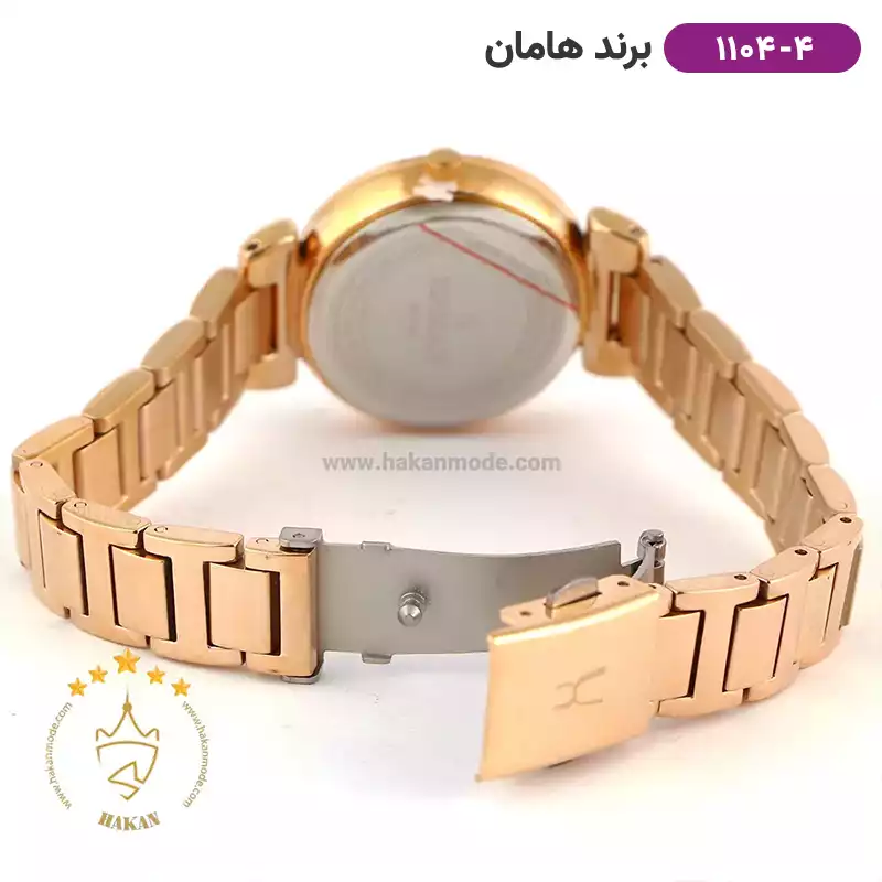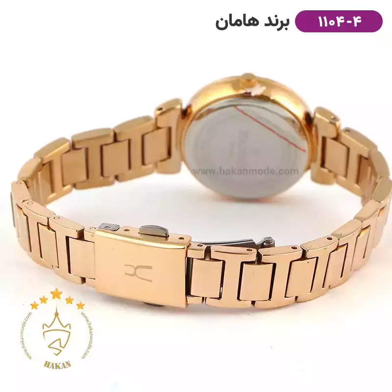 ساعت هامان فلزی زنانه تمام رزگلد صفحه گل دار 1104/4 L