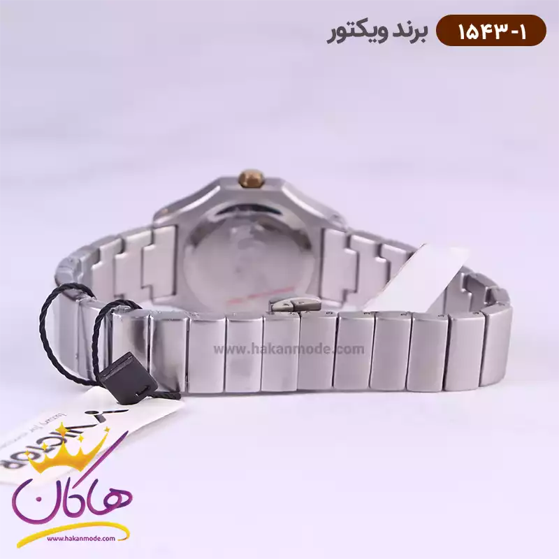 ویژگی ساعت ویکتور زنانه فلزی نقره ای طلایی نگین دار 1543/1