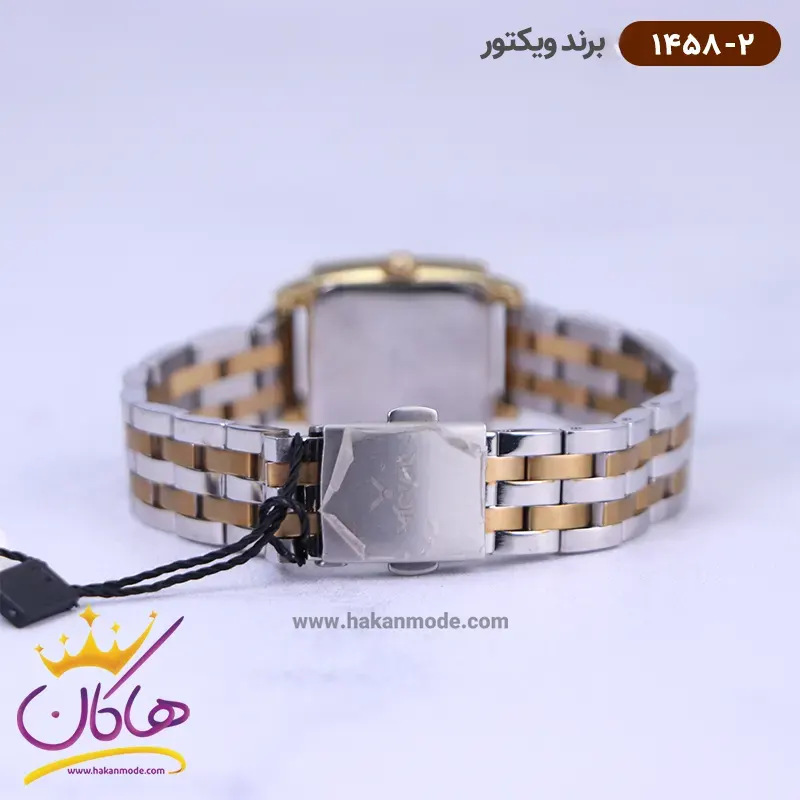قفل ساعت ویکتور زنانه فلزی نقره ای طلایی صفحه مربع 1458/2