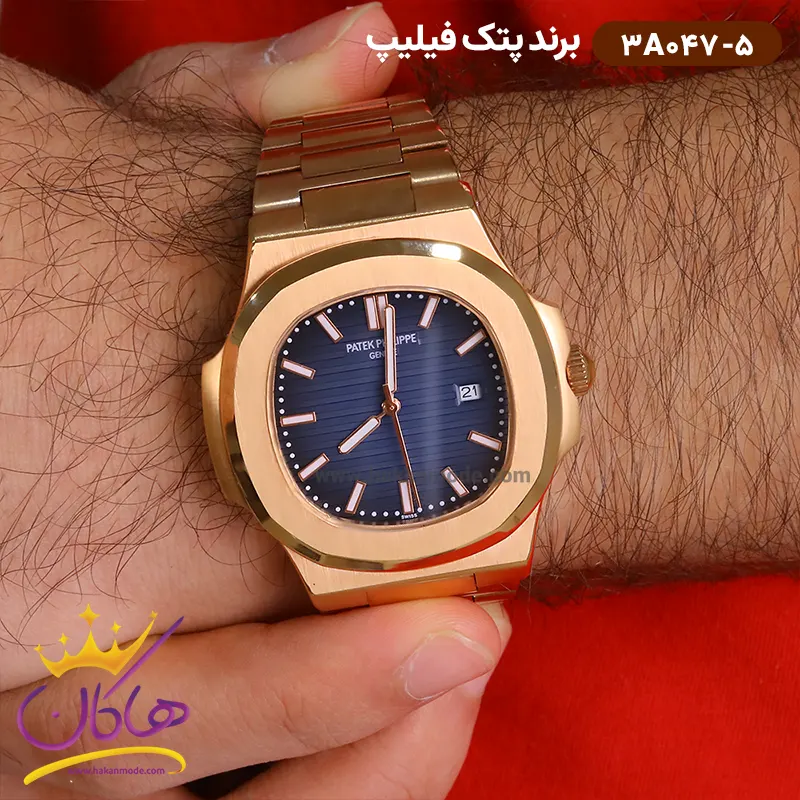 ساعت پتک فیلیپ مردانه فلزی صفحه آبی 3A047/5 ظاهری کلاسیک و جذاب دارد. این ساعت استیل رزگلد، رنگ ثابت و ضدحساسیت است. اصلی‌ترین چیزی که در ساعت مردانه پتک فیلیپ توجه ما را به خود جلب می‌کند، صفحه‌ی سرمه‌ای رنگ و شیاردار آن است که بر شیکی آن افزوده است. قاب ساعت به شکل مربعی و رزگلد است. عقربه‌ها و اندکس‌ها، شبنما و اندکس‌های ساعت خطی هستند. در موقعیت ساعت 3 یک مربع کوچک وجود دارد که نشان دهنده‌ی تقویم ساعت است. اگر به درون صفحه نگاه کنید، نام برند پتک فیلیپ زیر ساعت 12 دیده می‌شود. در کنار صفحه یک پیچ کوک برای تنظیم زمان وجود دارد. بند ساعت، فلزی و از نوع استیل مرغوب است که باعث تعرق و خارش نمی‌شود. طرح این بند از یک بافت ریز و درشت تشکیل شده است و قفل آن از مدل پروانه‌ای است که از دسته قفل‌های محکم و مطمئن است.