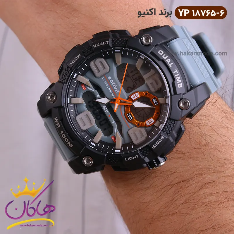 ساعت پسرانه اکتیو دو زمانه طوسی مشکی کد 18765/06 yp اصل
