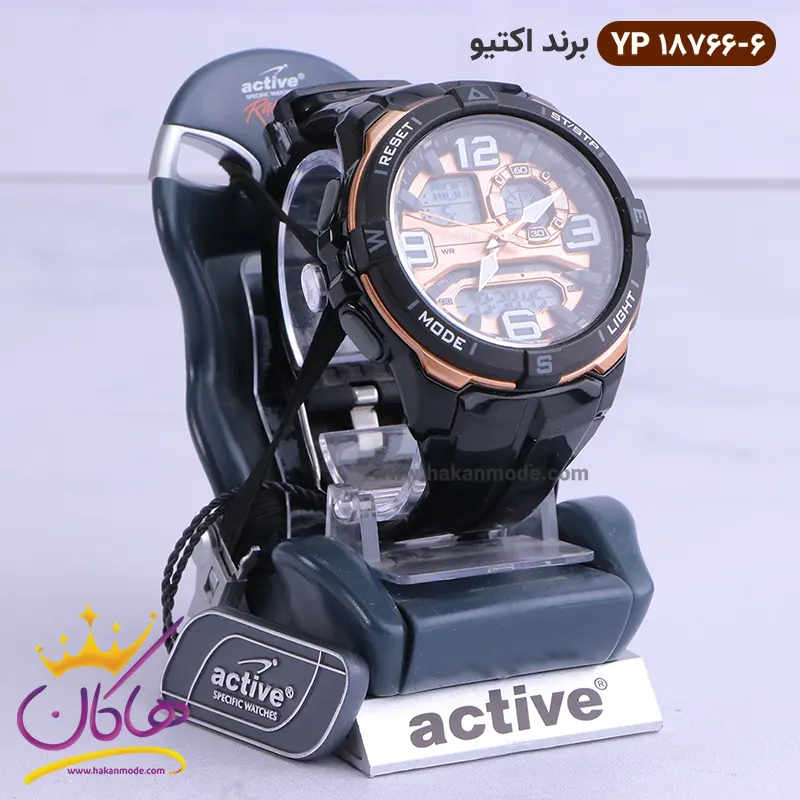 بهترین قیمت ساعت ورزشی اکتیو دو زمانه مشکی رزگلد کد 18766/06 yp