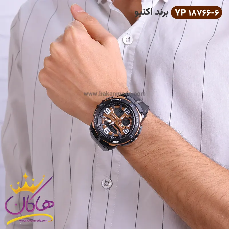 ساعت پسرانه اکتیو دو زمانه مشکی رزگلد کد 18766/06 yp