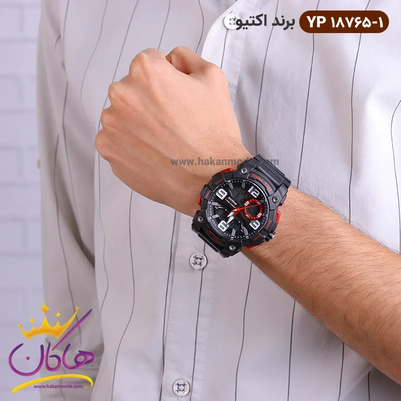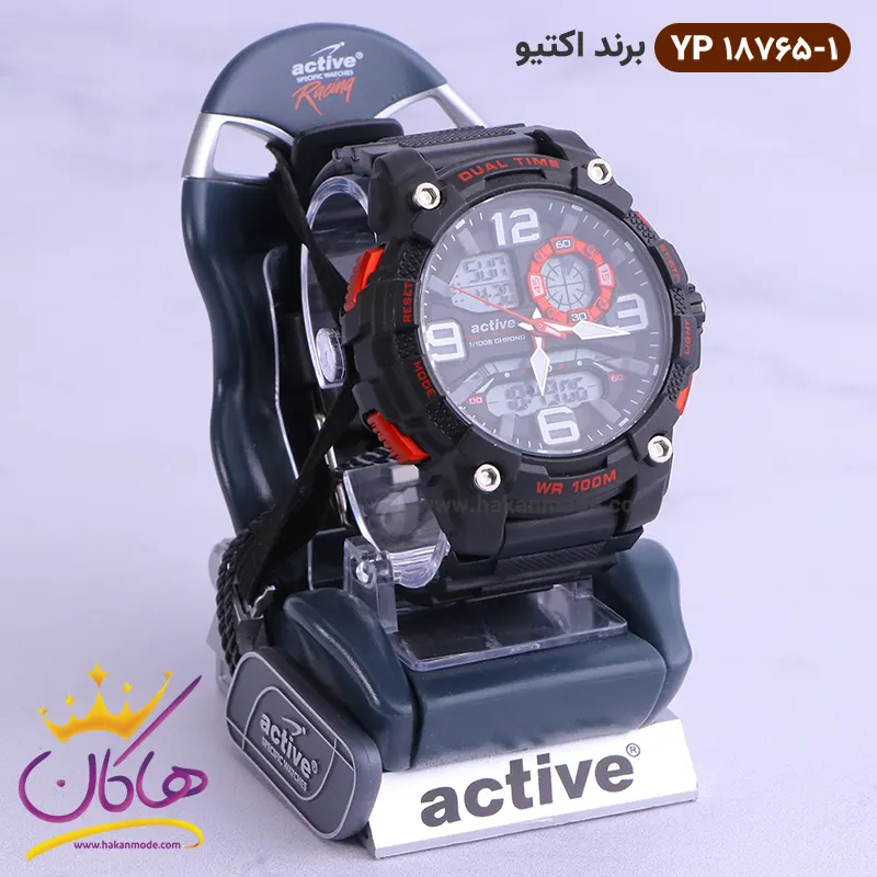 ساعت پسرانه اکتیو دو زمانه مشکی قرمز کد 18765/01 yp