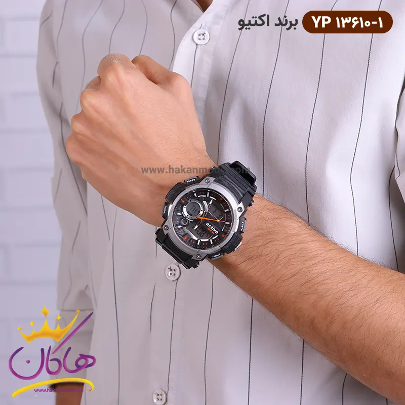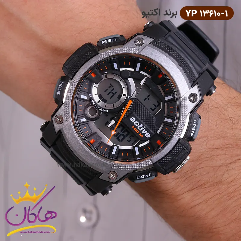 ویژگی ساعت پسرانه دو زمانه اکتیو مشکی طوسی 13610/01 yp