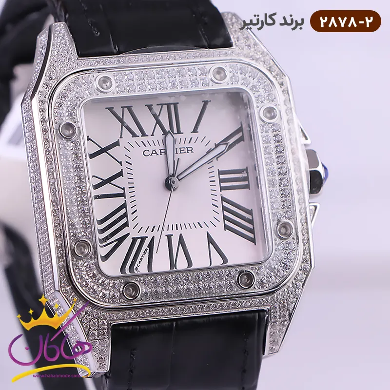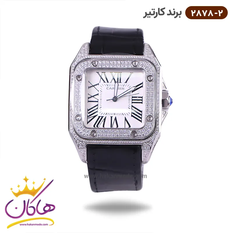 صفحه ساعت کارتیر مردانه بند چرم مشکی قاب فول نگین 2878/2