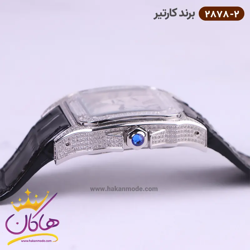 نمای بسته ساعت کارتیر مردانه بند چرم مشکی قاب فول نگین 2878/2