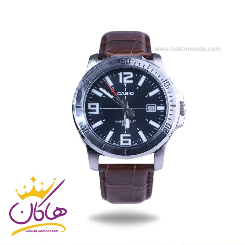 ساعت کاسیو مردانه بند چرم قهوه ای mtp-vd01l-1bvudf