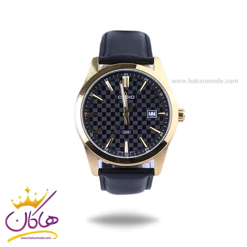 خرید ساعت کاسیو مردانه بند چرم مشکی قاب طلایی MTP-VD03GL-1AUDF