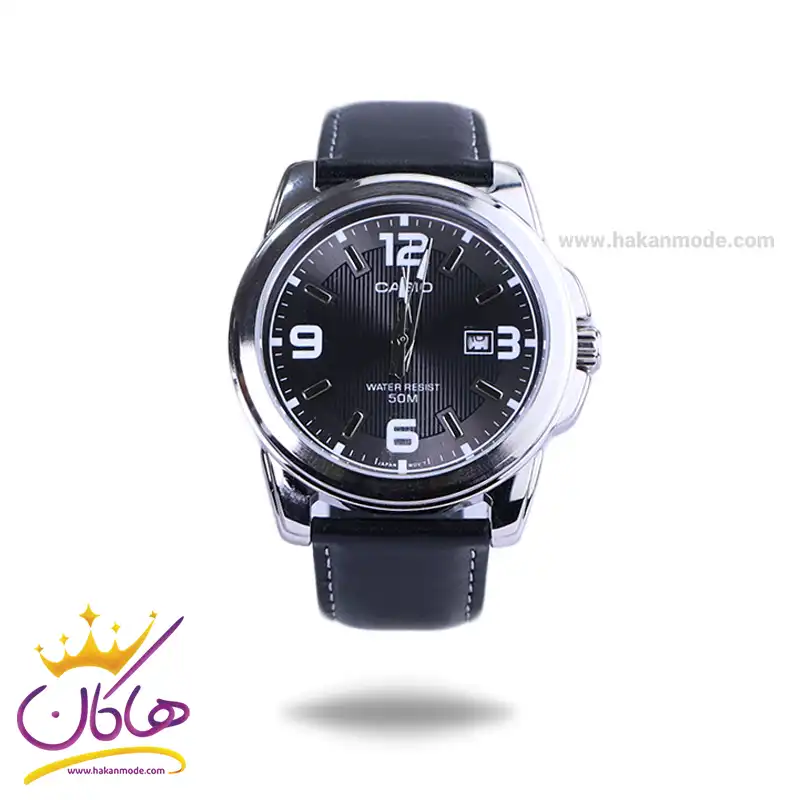 ساعت کاسیو مردانه بند چرم مشکی قاب نقره ای MTP-1314L-8AVDF