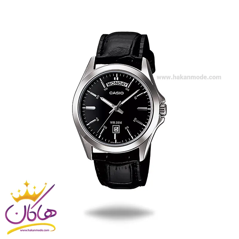 ویژگی ساعت کاسیو مردانه بند چرم مشکی قاب نقره ای MTP-1370L-1A