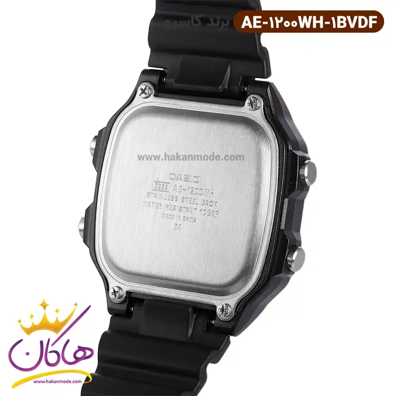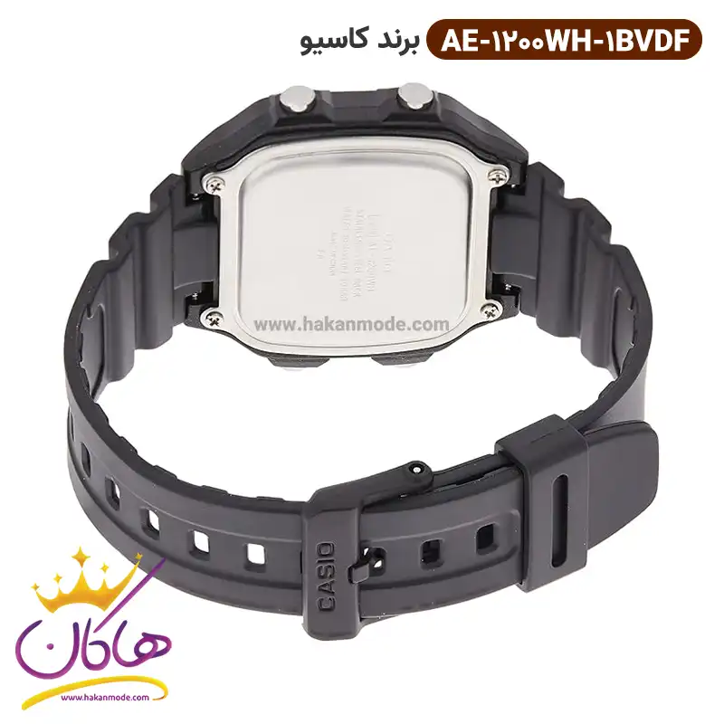 پشت صفحه ساعت کاسیو مردانه رابر مشکی دیجیتالی AE-1200WH-1BVDF