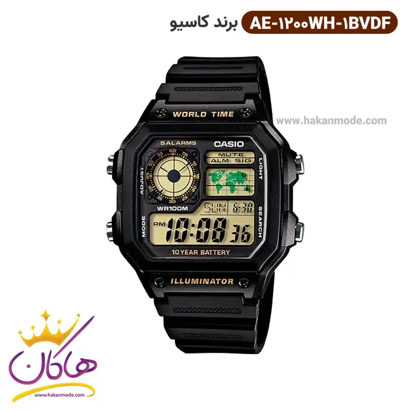 ویژگی ساعت کاسیو مردانه رابر مشکی دیجیتالی AE-1200WH-1BVDF