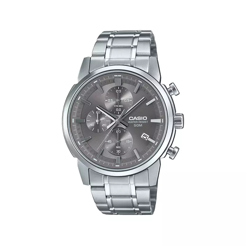 خرید ساعت کاسیو مردانه فلزی صفحه طوسی کرنوگراف MTP-E510D-8AVDF
