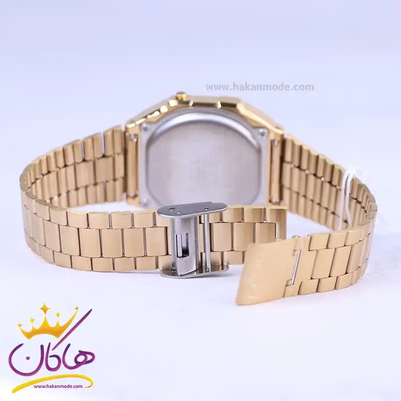 ساعت کاسیو مردانه فلزی طلایی دیجیتالی ظاهری مدرن و جذاب دارد. قاب ساعت به شکل مربع و طلایی رنگ است. صفحه دیجیتال این ساعت قابلیت نمایش ساعت، تاریخ، ماه، شب و روز را دارد. این ساعت فلزی ضد حساسیت و رنگ ثابت است که باعث تعرق و خارش نمی شود. قفل ساعت از نوع کلیپسی ریلی است و به راحتی قابل تغییر اندازه است. اگر به درون صفحه نگاه کنید، نام برند کاسیو بالای ساعت دیده میشود. در کنار صفحه 3 دکمه برای تنظیم زمان و ساعت وجود دارد.