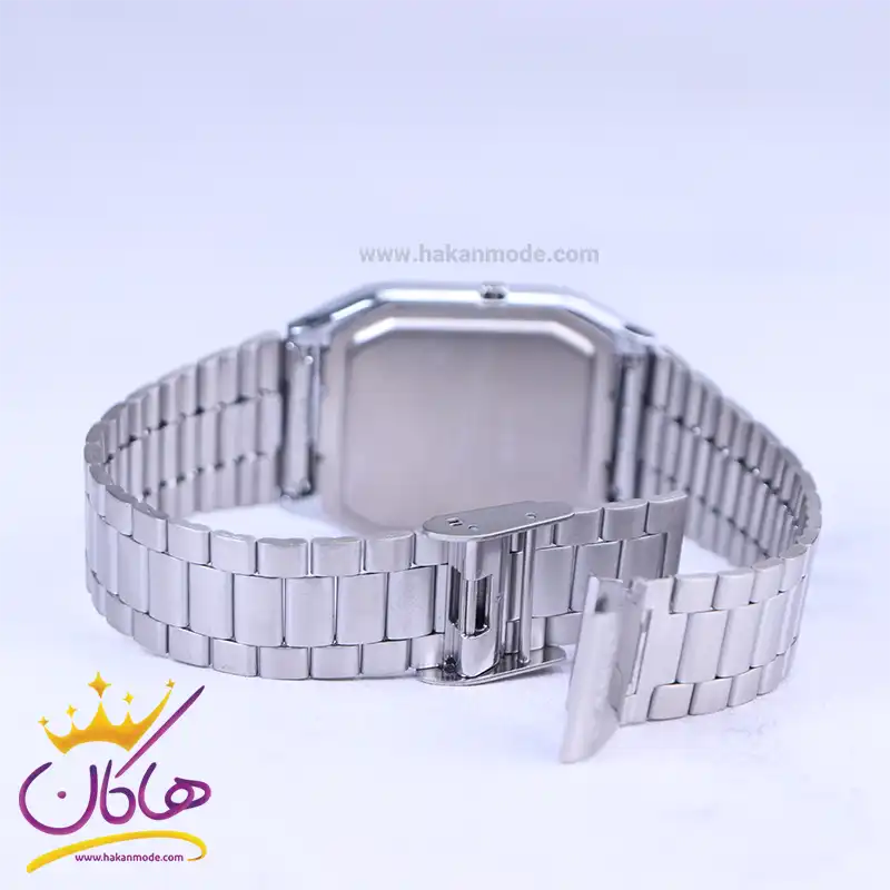 ساعت کاسیو مردانه فلزی نقره ای ظاهری مدرن و جذاب دارد. علاوه بر ویژگیهای ظاهری باید گفت این ساعت دو موتوره است و زمان را به دو صورت نشان میدهد. هم نمایش آنالوگ یعنی عقربهای دارد و هم به صورت دیجیتال نشان میدهد که میتوانید ساعت دیجیتال یا عقربهای خود را روی یک منطقهی زمانی دیگر تنظیم کنید و از ساعت کشور دیگر مطلع شوید. صفحهی ساعت سفید رنگ است و اندکسها به صورت عددی و مشکی رنگ طراحی شدهاند. بند ساعت از جنس فلز مرغوب و ضدحساسیت است که باعث تعرق و خارش نمی شود. قفل ساعت از نوع کلیپسی و به راحتی قابل تنظیم است و ساعت به راحتی از دست نمیافتد. دو زمانه بودن این ساعت یکی از دلایل شیکی آن است. اگر به درون صفحه ساعت نگاه کنید، نام برند کاسیو زیر ساعت 12 دیده میشود. در کنار صفحه 2 دکمه و یک پین کوک برای تنظیم زمان و ساعت وجود دارد.