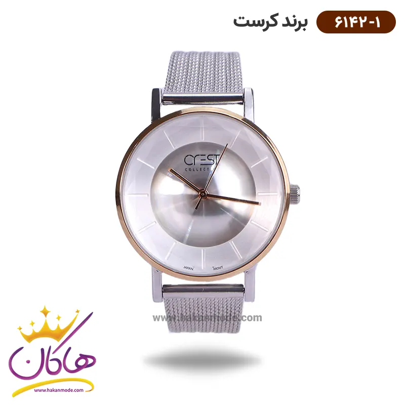 ساعت کرست زنانه فلزی نقره ای بند حصیری crest 6142/1