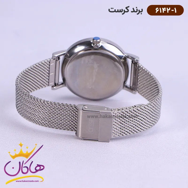 خرید ساعت کرست زنانه فلزی نقره ای بند حصیری crest 6142/1