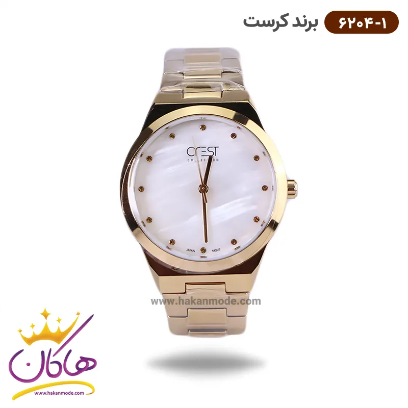 ساعت کرست زنانه فلزی طلایی ایندکس نگینی مدل crest 6204/1