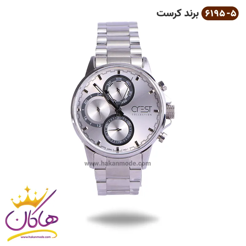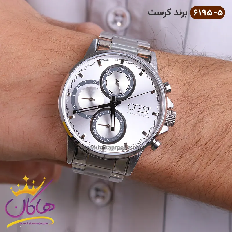 بهترین قیمت ساعت کرست فلزی مردانه نقره ای کد 6195/5 CREST